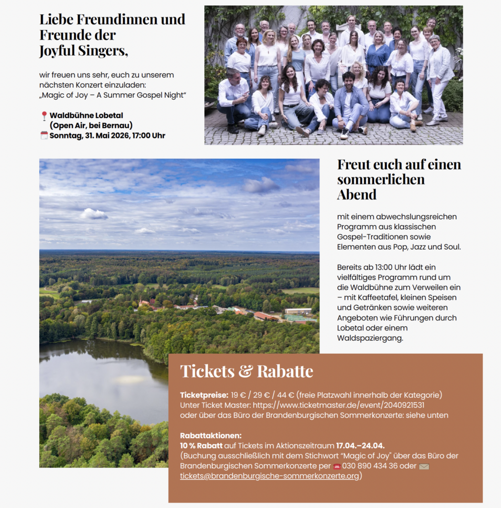 Sonntag, 31.5.2026 – 17 Uhr auf der Waldbühne Lobetal.